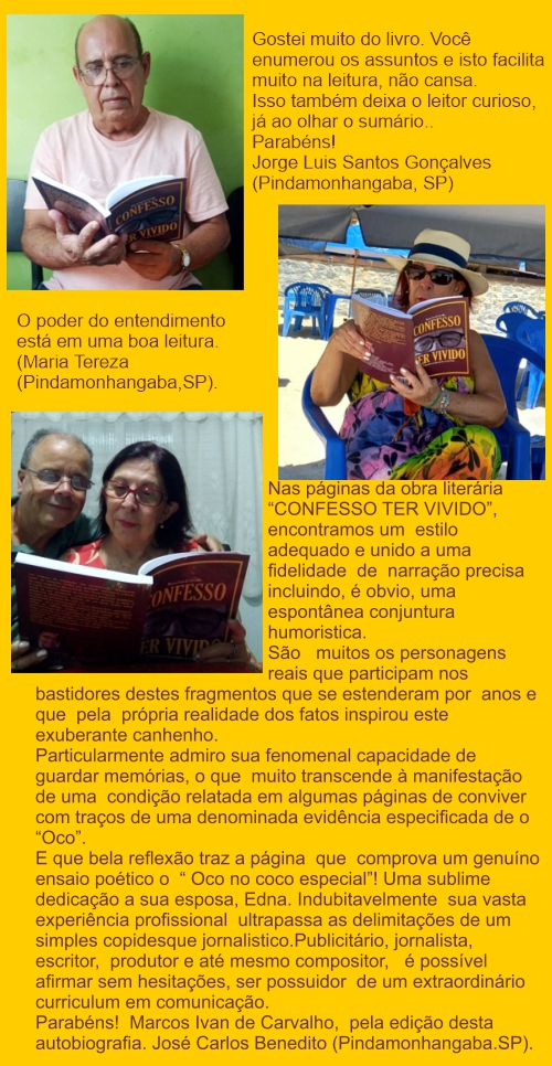 Dos inúmeros feed backs já recebidos, o autor selecionou alguns para mostrarmos aqui.