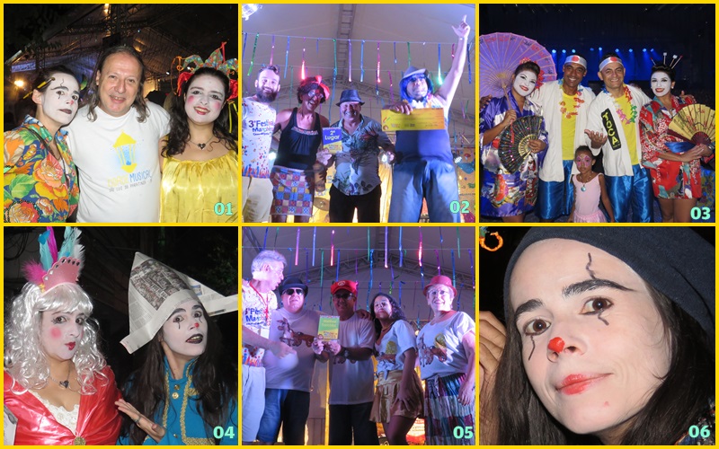 Nas fotos: 01) Patrícia Guimarães, Mário Piva (autor) e Esther Fietz ("Menina na janela"); 02) Tom Villanova, entregando o premio ao pessoal de "Faxineira" (José Benedito Macedo Sobrinho), defendida por Neiton e André Luiz; 03) Wagner Muzak (autor) e Nando Silva, que lutaram por "Sacada genial; 04)Esther Fietz e Patrícia Guimarães, Melhor Figurino com "Eu sou Napoleão"; 05) Dalmo Rosas premiando a Melhor Torcida (Vou pro Bloco da carroça) e a Melhor Intérprete, Patrícia Guimarães ("Menina na janela"). Fotos: Marcos Ivan, Canal39).