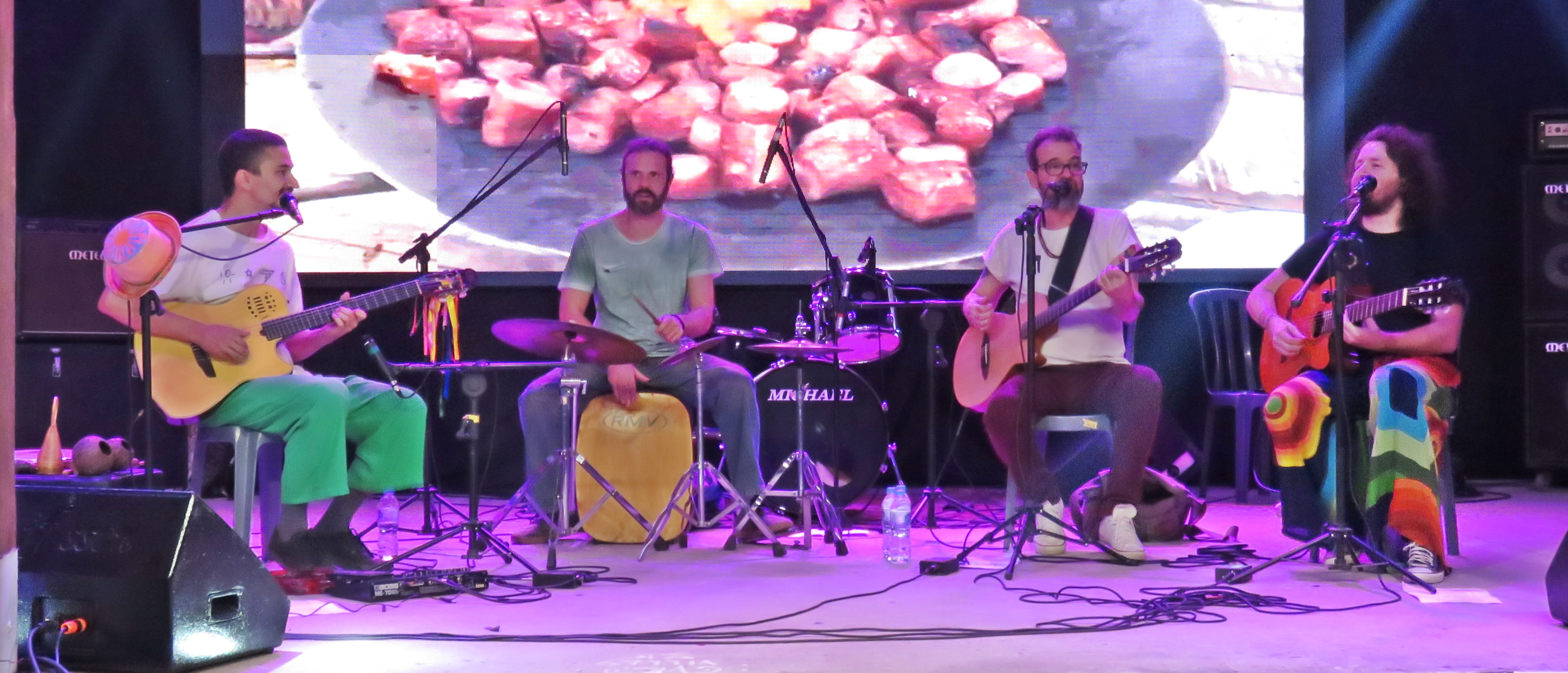 A noite cultural contou com a pesquisa e a memória musical dos tempos da Tropicália, de quando havia fundamentação para caminhar e cantar com o sol na banca de revistas e muitas esquinas do tipo São João com Ipiranga e gírias conversadas entre batidas inconfundíveis dos violões, somados aos parangolés de Oiticica e a febre dos festivais de MPB.