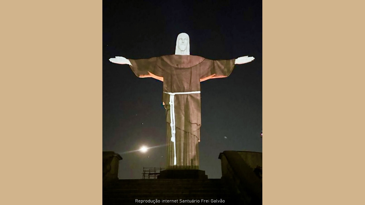 Durante a ocasião, uma projeção luminosa proporcionou a visualização do Cristo Redentor como se estivesse trajando um hábito franciscano.
