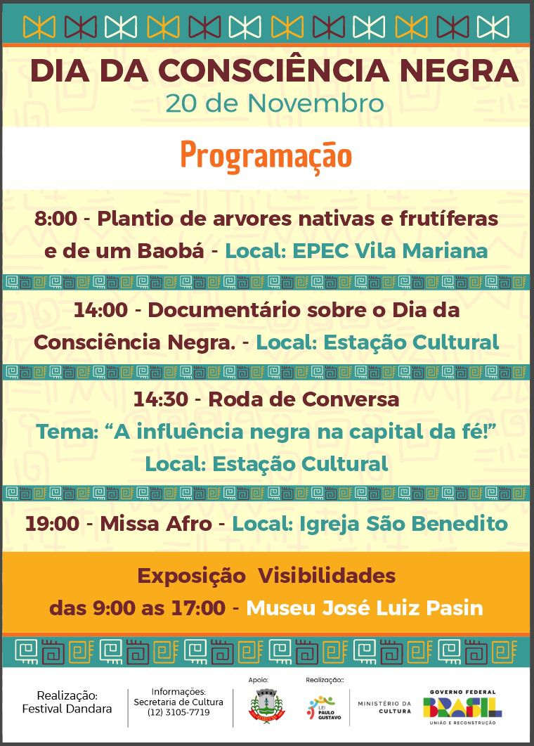 A Secretaria Municipal de Cultura, com apoio da Lei Paulo Gustavo e por meio do Conselho Municipal de Proteção à Igualdade Racial, Compir, realizam nesta semana o 17º Festival Dandara. Com ações voltadas a celebração da cultura afrodescendente, trazendo suas raízes ancestrais e estimulando o combate ao racismo. O Festival começa hoje (18), e vai até o dia 22 de novembro.