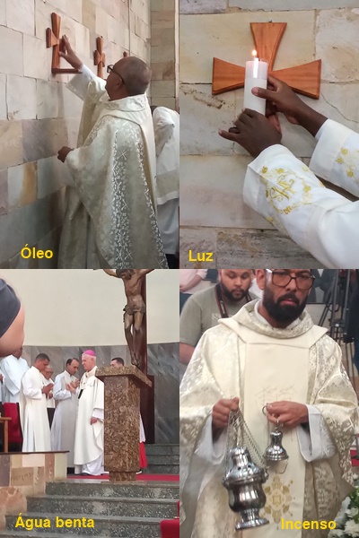 A mesa de celebração recebeu relíquias de Santa Luzia e foi ungida com óleo, incensada e iluminada. As paredes do templo foram, também, ungidas em suas cruzes, incensadas e iluminadas.