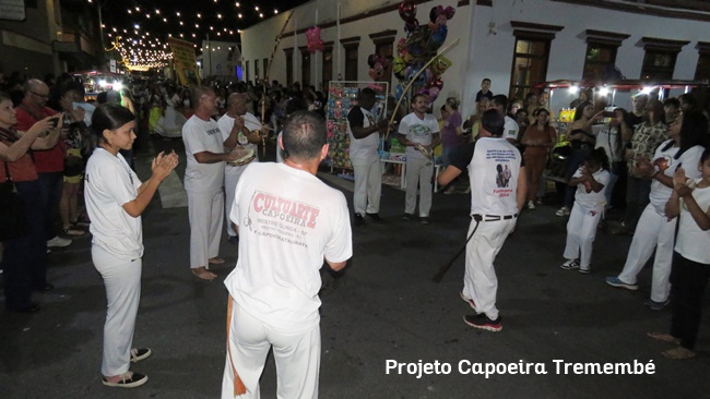 Um primeiro cortejo reuniu capoeiristas do Projeto Capoeira de Tremembé, Maracatu Baque da Estação e Mestre Quintino com sua Escola de Congo São Benedito do Erê.