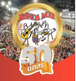 Clicando no selo dos 50 anos da Banda Mole, é possível ouvir o Hino Comemorativo.
