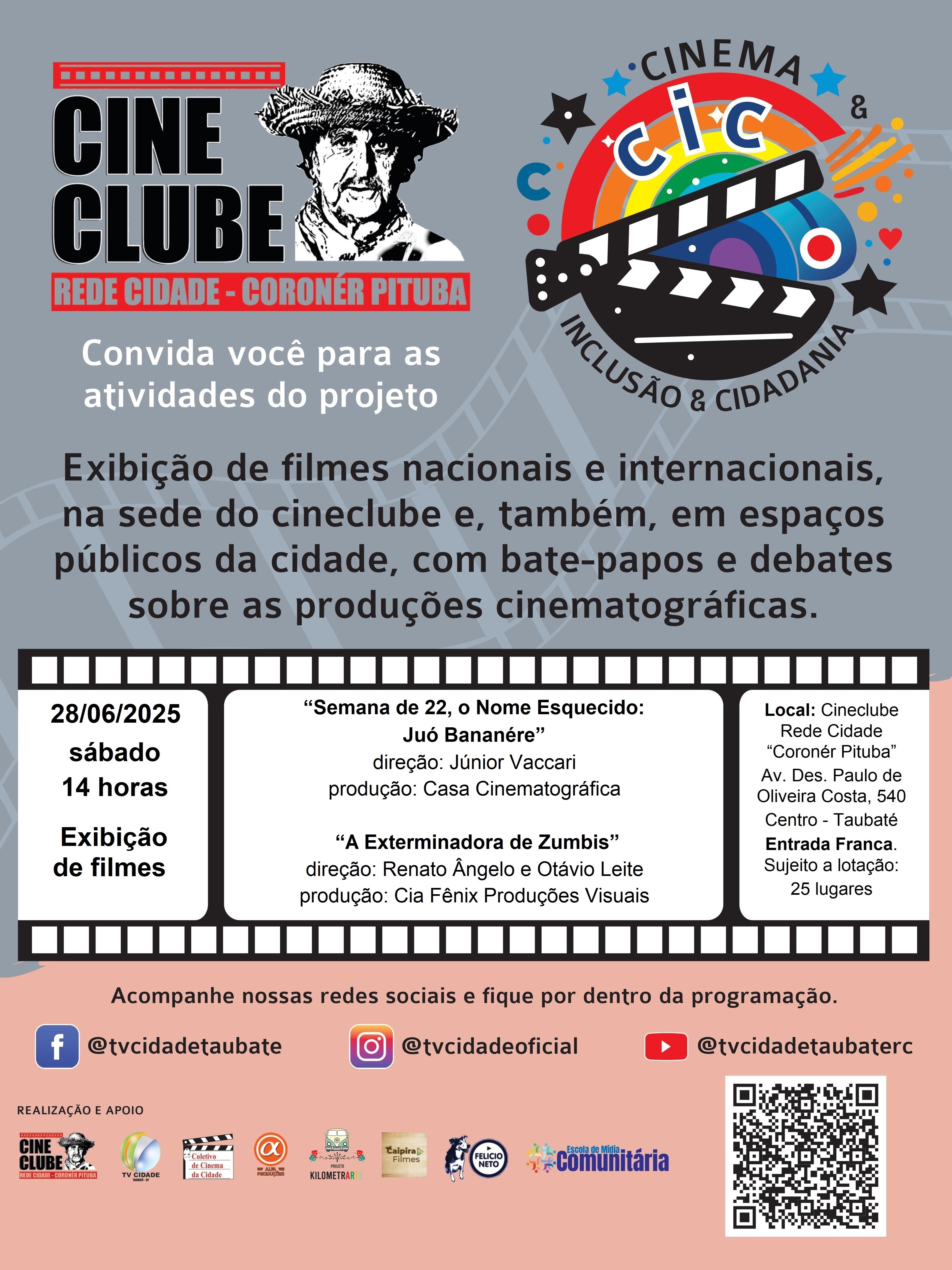 Acesse: @coletivodecinemadacidade, @tvcidadeoficial, @tvcidadetaubate, @tvcidadetaubaterc e fique por dentro da nossa agenda