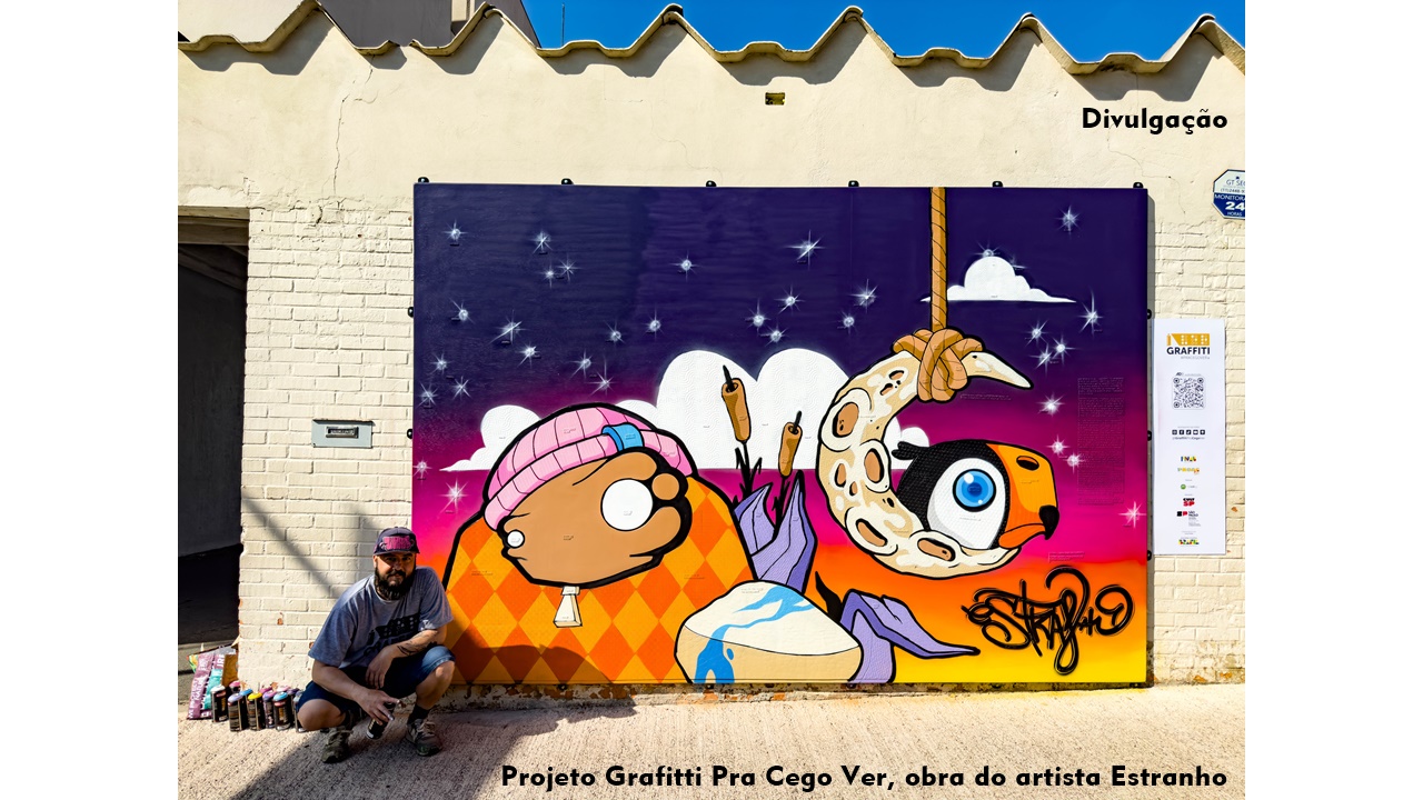 Depois de passar por locais icônicos como o Beco do Batman e o centro de São Paulo, o projeto Graffiti Pra Cego Ver inicia uma nova etapa, passando por cidades do interior paulista para levar uma nova obra especialmente criada por Estranho — nome artístico de André Fernandes de Oliveira, grafiteiro da cidade de Jundiaí (SP).