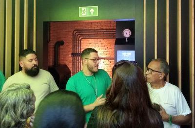 Após um receptivo totalmente customizado e instagramável, com recursos de tecnologia de comunicação e ambientação proporcionando autêntica imersão no verde “padrão” da marca, o grupo de visitantes, formado por Guias de Turismo da Região do Vale do Paraíba, teve a oportunidade de conhecer grande parte da linha de produção da bebida.