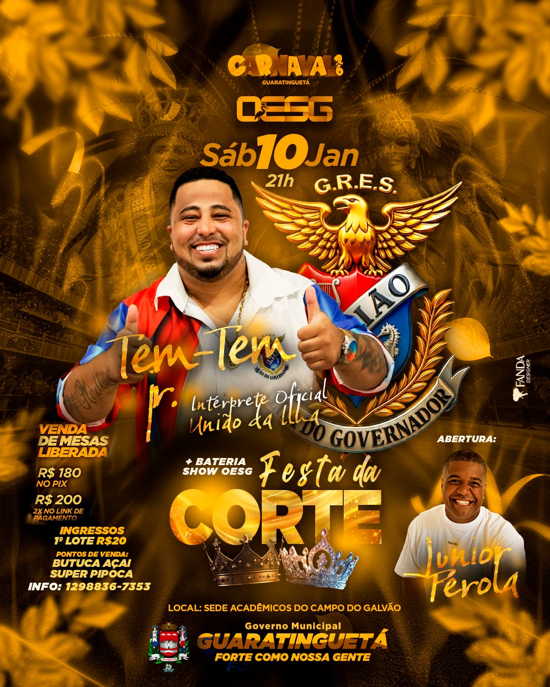 A Organização das Escolas de Samba de Guaratinguetá (OESG), em parceria com o Governo Municipal da Estância Turística de Guaratinguetá realizam, no sábado (10) a sua tradicional e concorrida Festa da Corte.