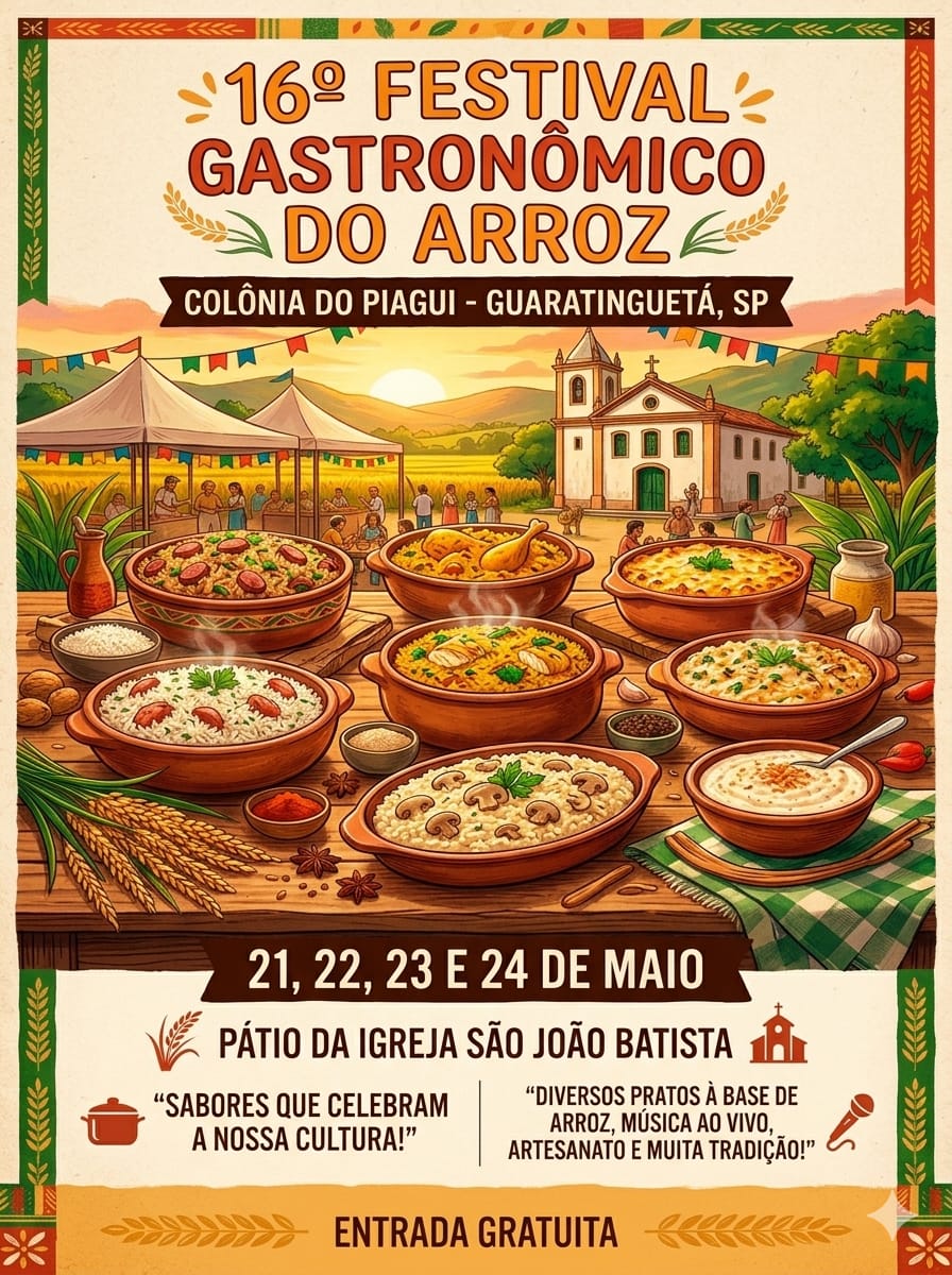 O mês de maio traz, para os apreciadores da boa culinária italiana e, também, as versões regionalizadas da gastronomia à base do arroz, a edição de número 16 do Festival Gastronômico do Arroz.