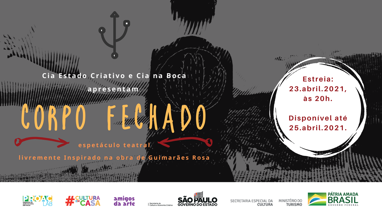 Contemplado pelo Edital PROAC Expresso Lei Aldir Blanc nº 41/2020, o Espetáculo "Corpo Fechado" é resultado da união das Cias Estado Criativo e Na Boca, ambas do interior de São Paulo.