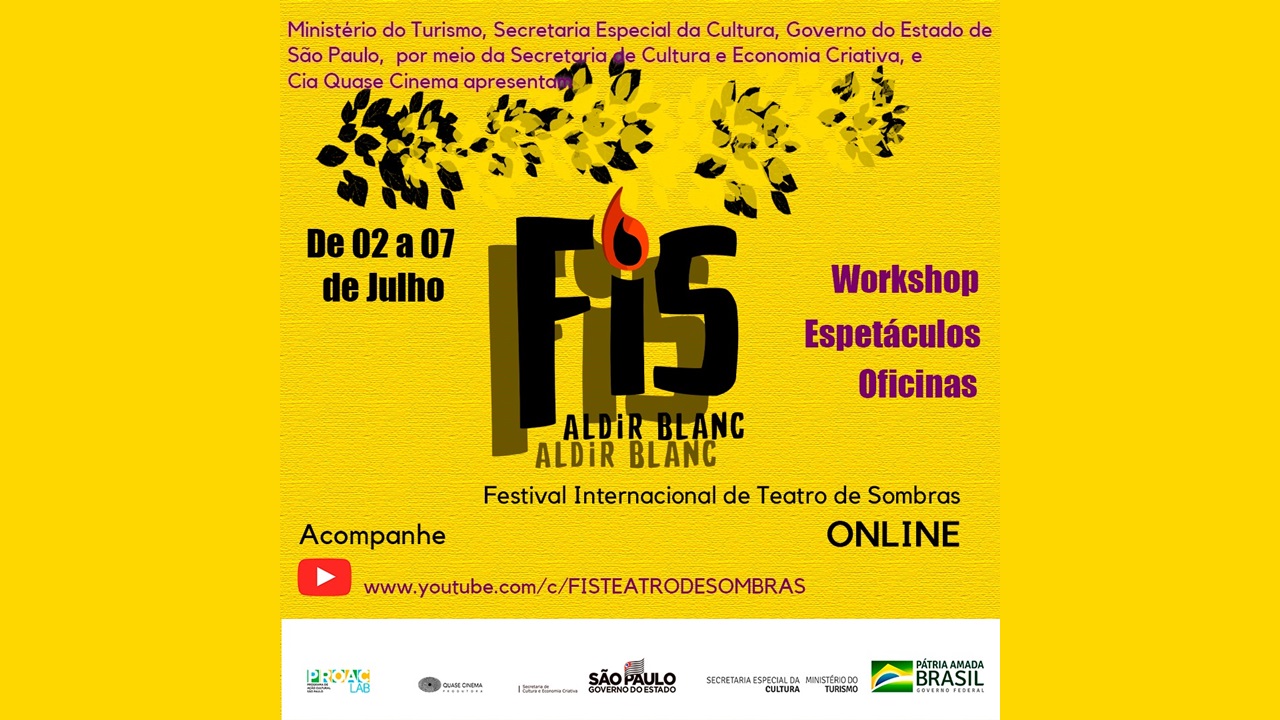 “Festival Internacional de Teatro de Sombras realiza edição especial com programação online e gratuita dos dias 02 a 07 de julho. Contemplado pela lei emergencial Aldir Blanc, o Festival realiza uma nova edição com espetáculos de diversos gêneros que contemplam o Teatro de Sombras em todo seu potencial artístico e criativo. Sua programação conta ainda com oficinas, workshops e bate-papos após cada apresentação para compartilhar com o público sobre o processo criativo e os bastidores das produções participantes.