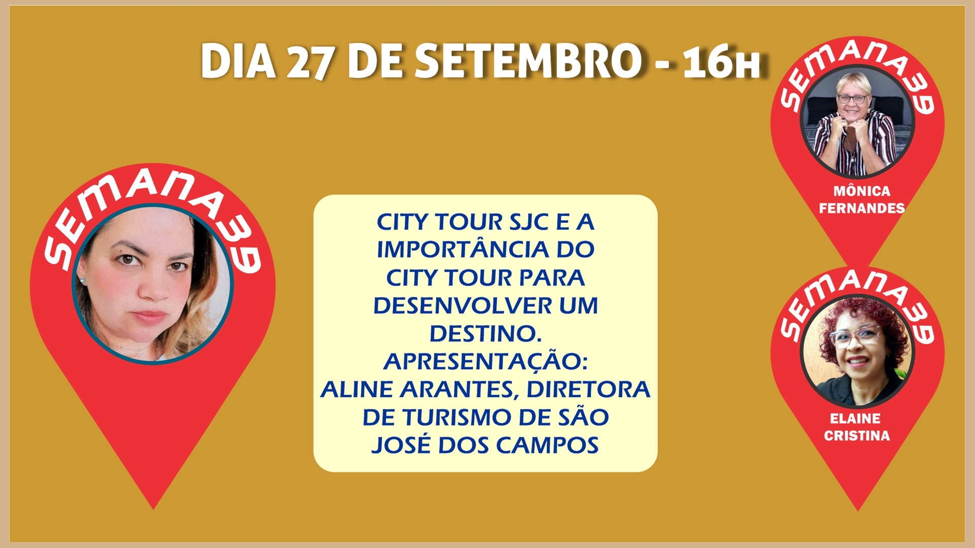 Conversa com Aline Arantes, diretora de Turismo de São José dos Campos; Mônica Fernandes e Elaine Cristina, Guias de Turismo