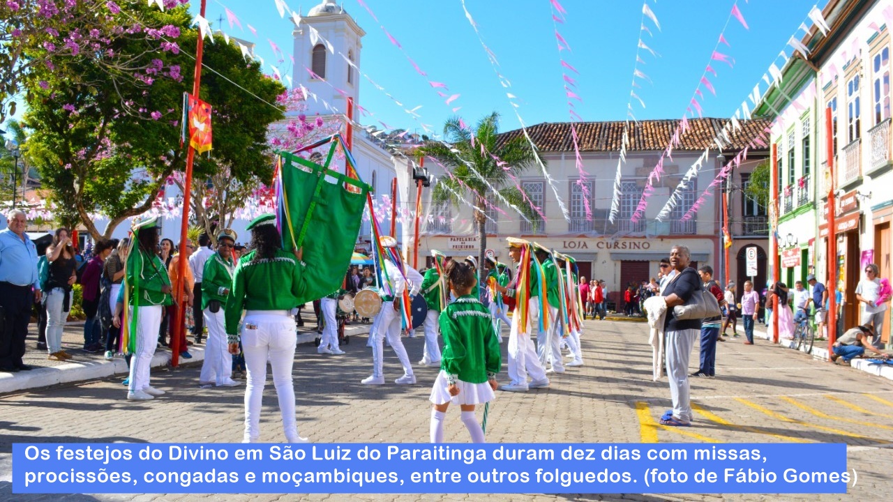 Nos dez dias de festejos do Divino em São Luiz do Paraitinga, 174 km da capital, as ruas do Centro Histórico ficam tomadas de turistas e devotos e interditadas para veículos. Trata-se de um dos eventos mais tradicionais e importantes da cidade que, com suas várias pousadas, recebe visitantes para pagar promessas, rezar, acompanhar a procissão do Divino, pedir bênçãos e provar o afogado (comida típica dos tropeiros) que é distribuída gratuitamente ao povo. Entre as atrações, o turista poderá assistir a missas, procissões, congadas e moçambiques (e outros folguedos), a farra dos bonecões gigantes do João Paulino e a Maria Angu, à dança das fitas, entre outras. Da Capital, chega-se a São Luiz do Paraitinga pelas Rodovias SP-070 (Ayrton Senna e Carvalho Pinto) e pela SP-125 (Rodovia Oswaldo Cruz).