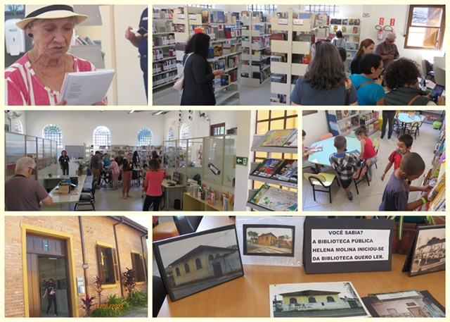 Passeio prosseguindo, parada muito cultural, também, na Biblioteca Pública “Helena Molina”, onde pudemos saber de o prédio ter sido, inicialmente, projetado para abrigar uma central de distribuição de energia elétrica. Nunca serviu para tal, vindo a se tornar espaço para outras atividades, inclusive como escola e salão de baile.