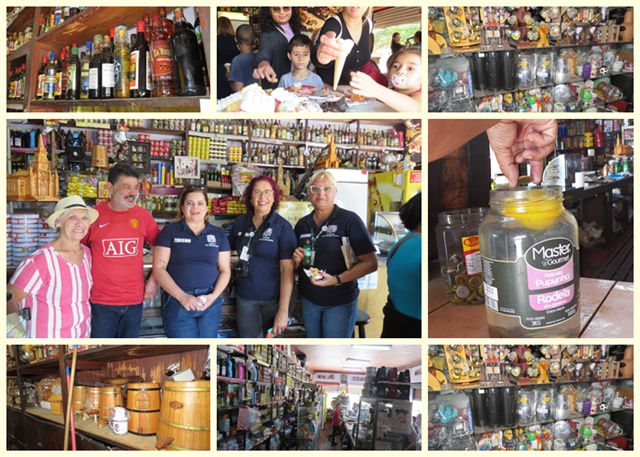 Telefones muito antigos, daqueles de manivela, enfeitavam o espaço onde não havia produtos expostos. Artesanato, queijos, violão sobre a geladeira, réplica da igreja matriz...