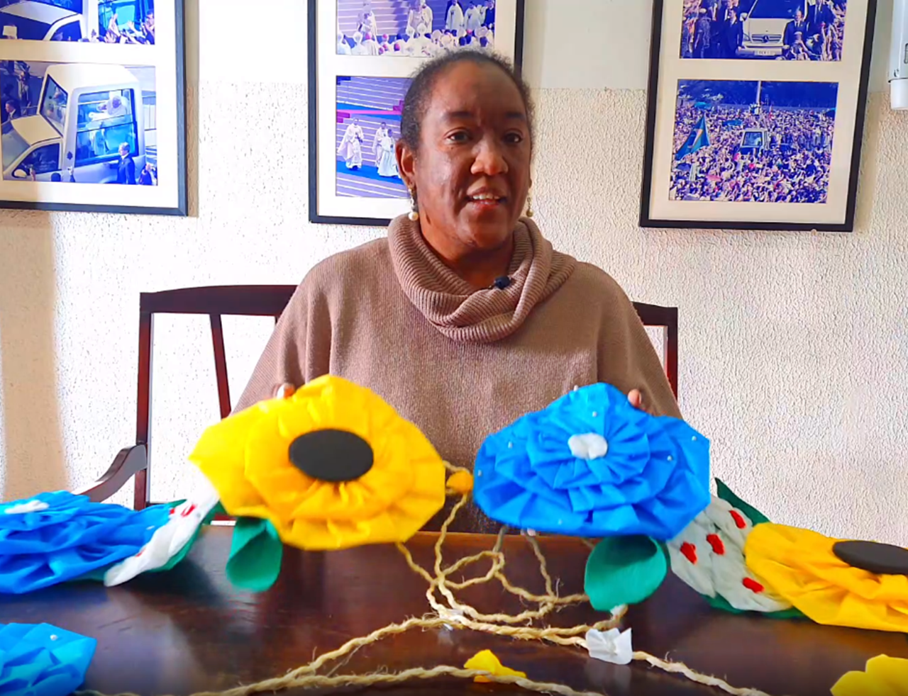 Zenilda Cunha, atual secretaria de Turismo, coordena uma equipe de funcionários da própria pasta na confecção de flores artesanais, de diversos tamanhos e formatos, as quais serão componentes dos elementos de ornamentação para a referida procissão.