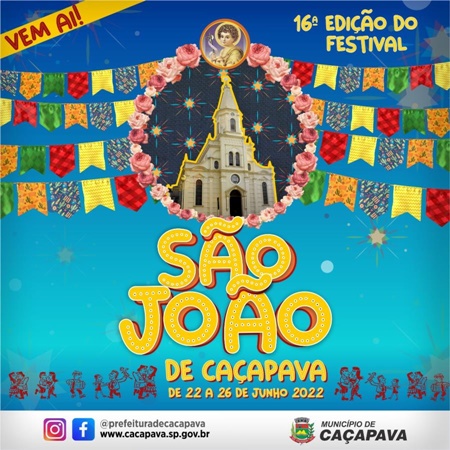 Resgatando a tradição em homenagem a São João, a cidade de Caçapava vive, no período de 22 a 26 de junho, mais um Festival de São João.