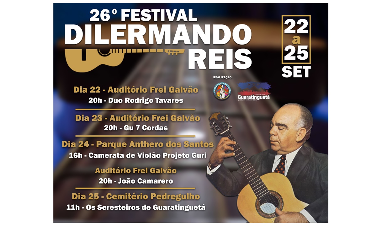 Homenageando um de seus ilustres filhos, a Estância Turística de Guaratinguetá, na Região Metropolitana do Vale do Paraíba e Litoral Norte realiza, no período de 22 a 25 de setembro, a 26ª edição do Festival Dilermando Reis.