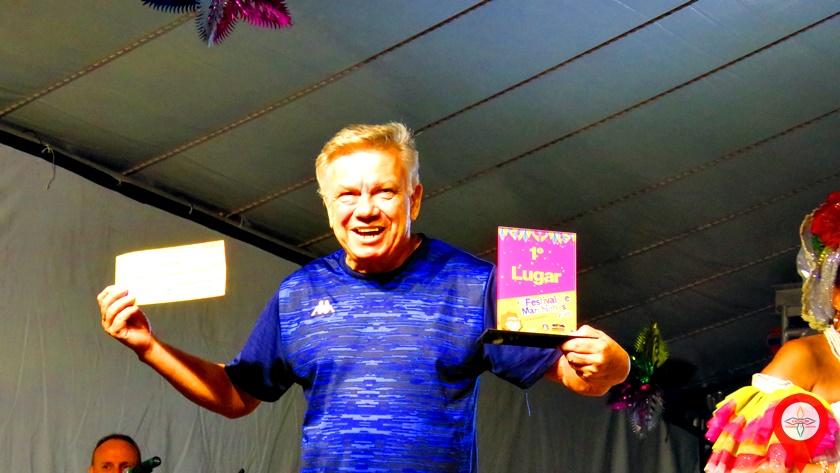 Terceiro lugar – Jorge Luiz Ribeiro César Gonçalves, de Pindamonhangaba, com “Hoje eu vou atrás da banda”. Mereceu aplausos e a vibração de muitas pessoas da plateia. Jorge Luiz é participante assíduo de festivais de marchinhas.