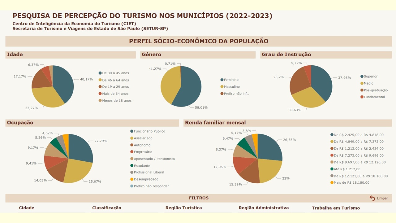 O Centro de Inteligência da Economia do Turismo (CIET), da Secretaria de Turismo e Viagens do Estado de São Paulo (Setur-SP), publicou, em seu site, os resultados de sua mais recente Pesquisa de Percepção do Turismo nos Municípios Paulistas, agora em sua 3ª edição. O levantamento busca compreender o impacto da presença de turistas nas cidades do interior paulista, sob o olhar dos próprios munícipes.
