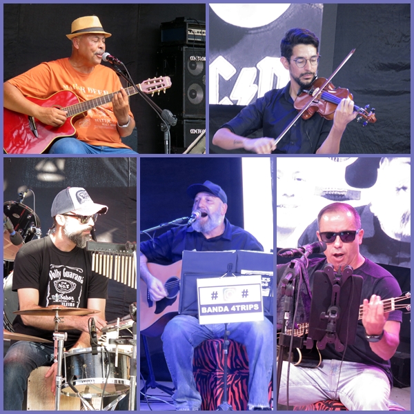 Os três rapazes da Banda 4Trips, especializados em pop rock e blues clássico, trouxeram o quarto elemento, um convidado violinista, para ocuparem – com muito talento e boa comunicação, o seu horário. Aliás, com a cumplicidade de filhos, netos e demais agregados familiares, na plateia.