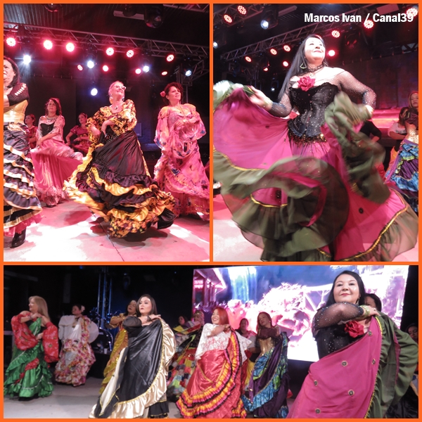 A beleza dos movimentos e o colorido das roupas inundou o palco quando da apresentação das bailarinas da Companhia de Dança Cigana Rosas de Fogo, dirigida pela professora Márcia Sylvas, com coregorafias em grupo e alguns solos.