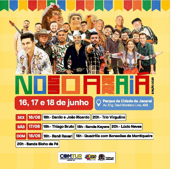 O Conselho Municipal de Turismo – COMTUR de Jacareí publicou em sua página de rede social a programação de 2023 do evento junino Nosso Arraiá.