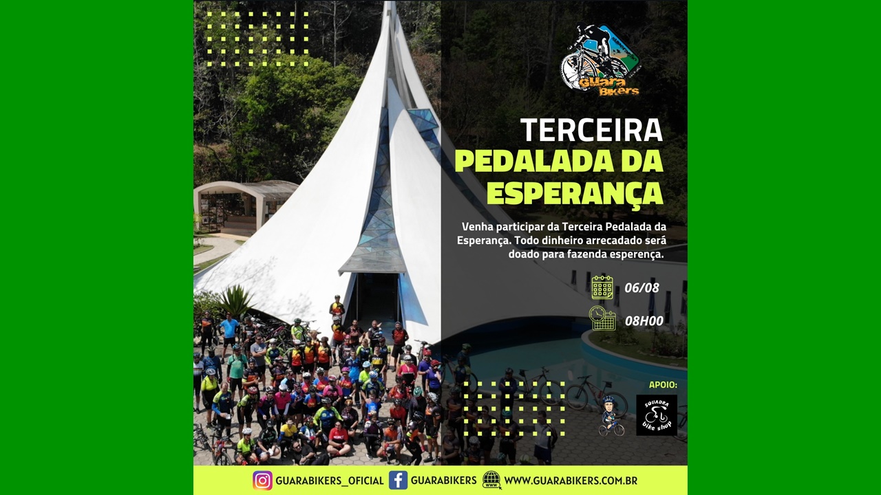 Todos podem participar da Terceira Pedalada da Esperança no dia 06 de agosto de 2023, demonstrando o seu apoio à Fazenda da Esperança, comunidade terapêutica que atua desde 1983 no processo de recuperação de pessoas em busca da libertação de seus vícios, principalmente do álcool e da droga.