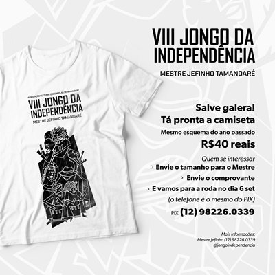 Para quem desejar guardar uma lembrança do Jongo do Tamandaré, existe uma camiseta com arte abaixo na foto, na qual está o modo de encomendar.