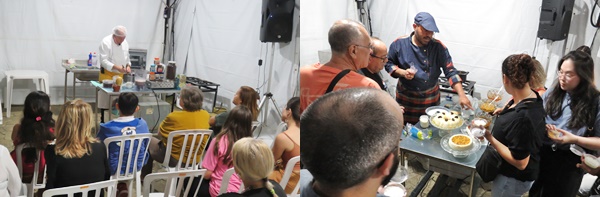 A partir das 12h tem muita comida gostosa, mais de 80 pratos salgados ou doces, sendo servidos nas tendas do evento.