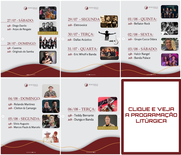 A programação litúrgica também está disponível, bastando clicar no espaço informado na agenda abaixo.