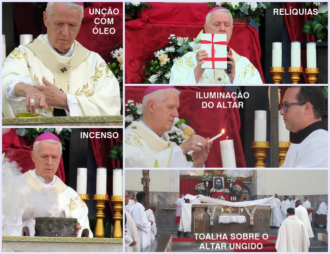 A mesa de celebração recebeu relíquias de Santa Luzia e foi ungida com óleo, incensada e iluminada. As paredes do templo foram, também, ungidas em suas cruzes, incensadas e iluminadas.