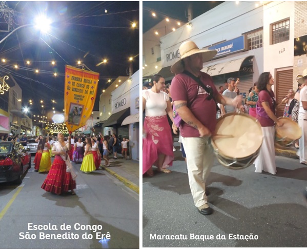 Um primeiro cortejo reuniu capoeiristas do Projeto Capoeira de Tremembé, Maracatu Baque da Estação e Mestre Quintino com sua Escola de Congo São Benedito do Erê.