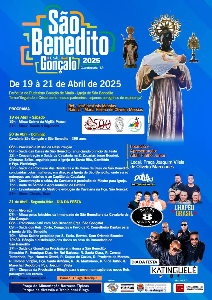 Acompanhe, durante a semana, a agenda da Festa de São Benedito em Guaratinguetá.