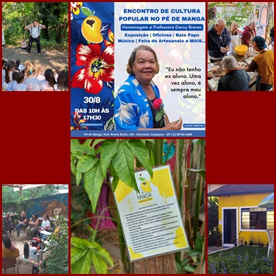 O Pé de Manga – Cultura e Afeto realiza no dia 30 de agosto, das 10h às 17h30, seu primeiro Encontro de Cultura Popular, com uma programação inédita que reúne bate-papo com música, exposição, oficinas, feira de artesanato e uma homenagem especial à professora, escritora e folclorista Darcy Breves.