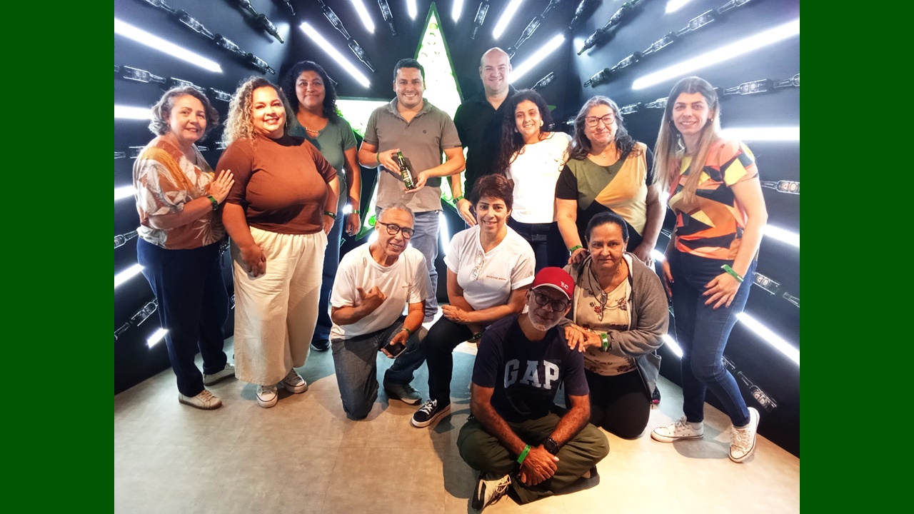 Após um receptivo totalmente customizado e instagramável, com recursos de tecnologia de comunicação e ambientação proporcionando autêntica imersão no verde “padrão” da marca, o grupo de visitantes, formado por Guias de Turismo da Região do Vale do Paraíba, teve a oportunidade de conhecer grande parte da linha de produção da bebida.