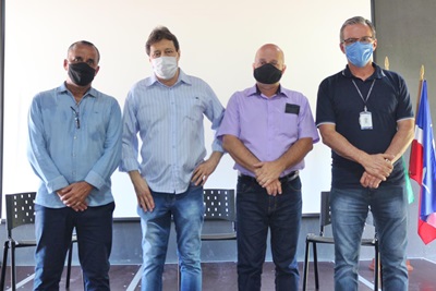 Na foto ao lado, da esquerda para a direita: Mário Rodrigues Augusto Nunes, Luiz Antonio Silveira da Motta, Ricardo Junqueira Teberga e o prefeito Marcus Soliva. (Créditos: Divulgação)