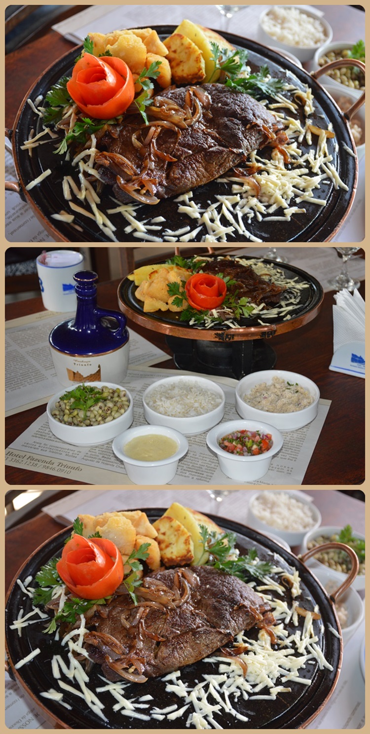 Para tanto, o Restaurante Azul Histórico, encravado no Hotel Fazenda Triunfo, apresenta essa iguaria, produzida pela Cheff Karla Santos, desde o corte, o preparo e apresentação, sendo a mesma servida na pedra, acompanhada de feijão verde, arroz, macaxeira, batata doce assada, vinagrete, farofa da casa e salada cultivada na própria horta agroecológica. (Fotos de Izabelly Diniz).
