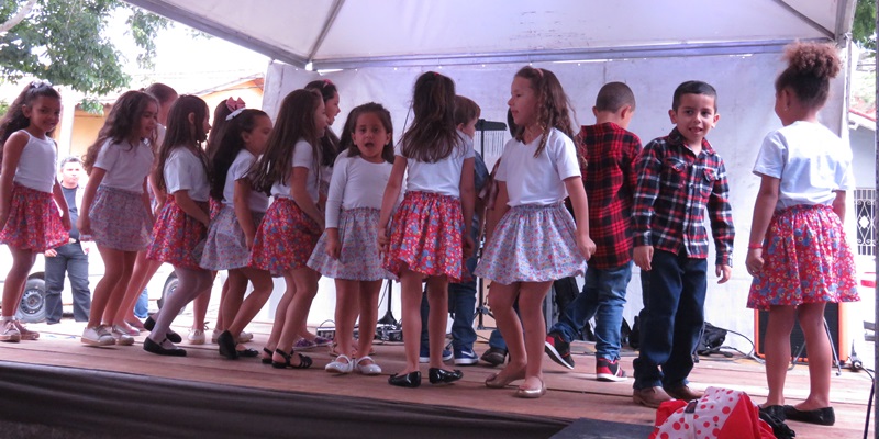 As crianças da Educação Infantil de Silveiras participaram do evento, fazendo uma apresentação coreográfica no palco da festa.