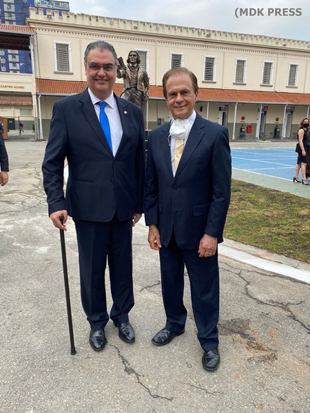 À direita, ao lado do deputado Andrada, Malcolm Forest, vice-presidente do Instituto Histórico e Geográfico de São Paulo e idealizador do programa para o Bicentenário da Independência do Brasil, “A Jornada dos Príncipes”, foi o facilitador das presenças do Deputado Lafayete Andrada e do Príncipe Imperial Dom Bertrand de Orleans e Bragança no evento que contou ainda com a presença do Prof. Rafael Nogueira, presidente da Biblioteca Nacional e muitas outras autoridades militares e civis.