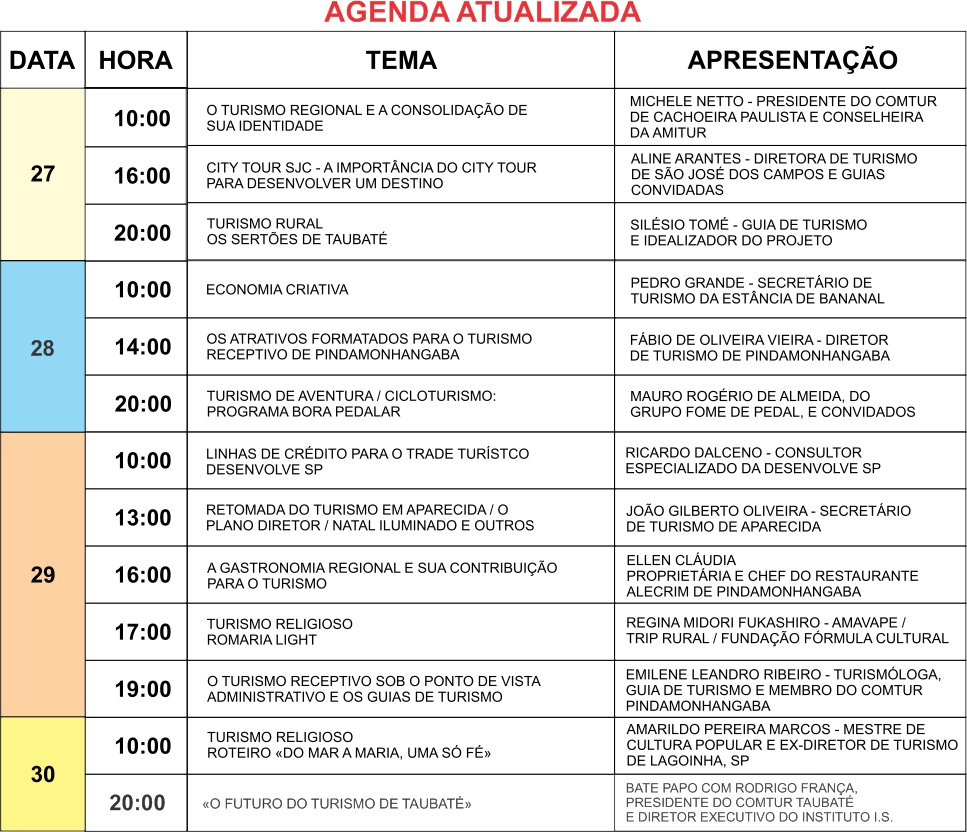 ATENÇÃO: A CONVERSA COM O DIRETOR DE TURISMO DE PINDAMONHANGABA FOI ANTECIPADA PARA AS 14h DO DIA 27 DE SETEMBRO