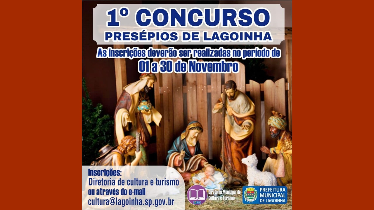 A Prefeitura Municipal de Lagoinha, através da Secretaria Municipal de Educação, Cultura e Turismo/Diretoria de Cultura e Turismo, torna público o 1° concurso para seleção de presépios do Município de Lagoinha/SP (Concurso n° 04/2021)