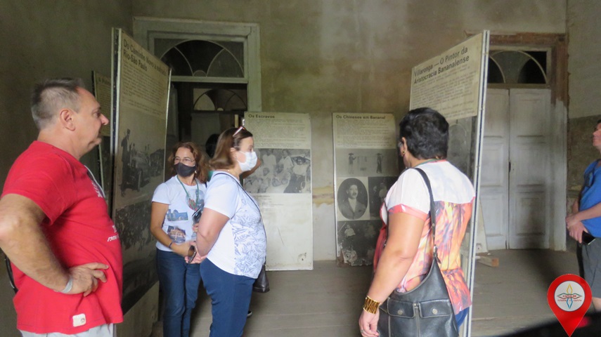 Painéis, com fotografias antigas, ampliadas, nos contam, por exemplo, a respeito da chegada de chineses a Bananal, por volta de 1835... Outro, ainda, mostra uma das “bandas de negros” as quais faziam a trilha sonora durante os saraus. “Aquele branco, no meio da foto, é o maestro contratado para ensinar aos escravos escolhidos pelo senhor a arte da música”, explicou Luzinete.