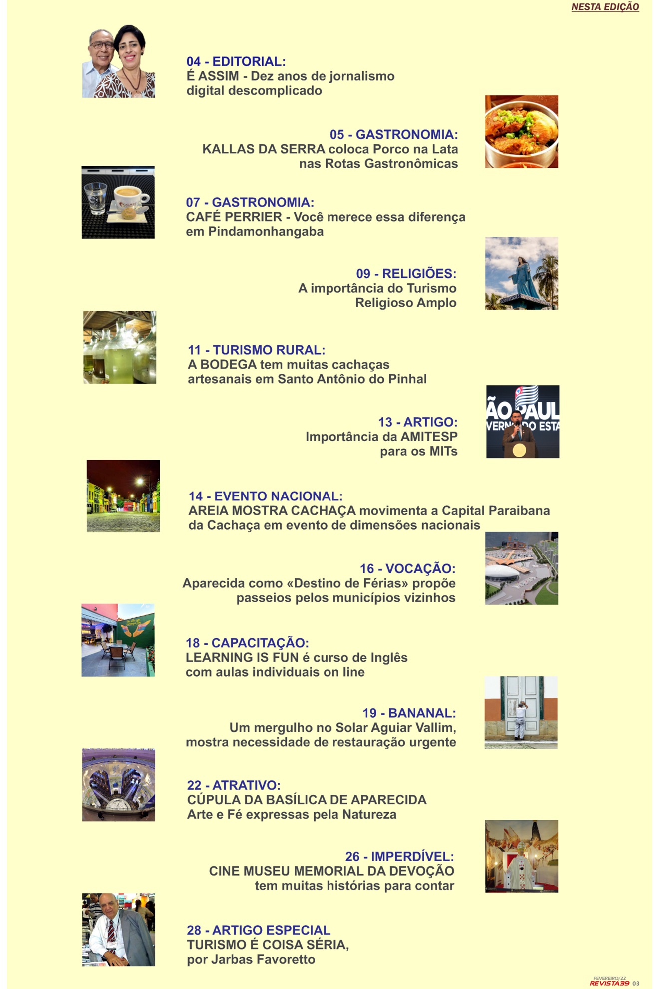 Cumprindo sua missão de sempre buscar melhor informar sobre Turismo e Cultura, de maneira simples, porque ser simples não é complicado, o Canal39 lança, a partir desta segunda-feira, 21, a edição número dois da sua Revista39 Digital.