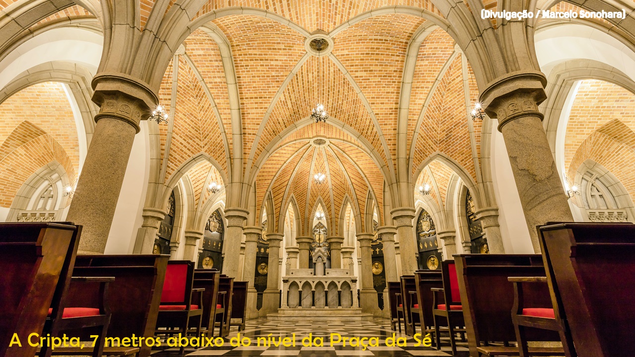 A cripta comporta 70 espectadores e tem belíssima arquitetura.