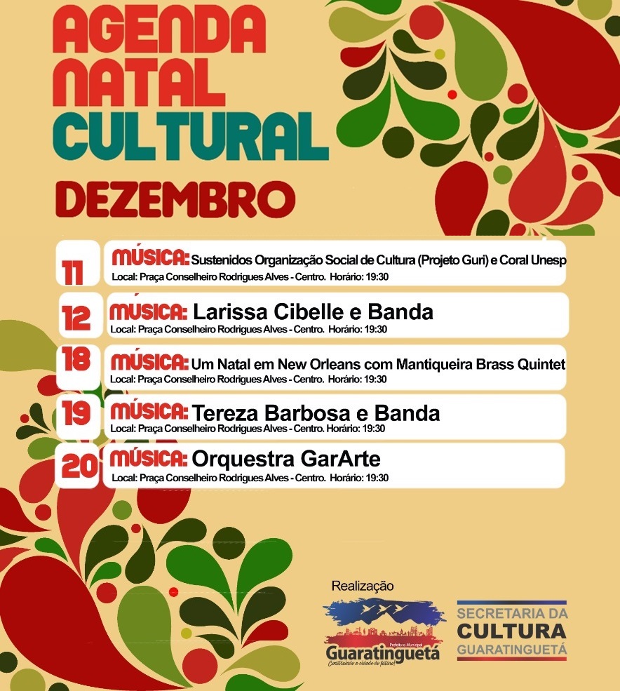 Para este mês de dezembro, a Praça Conselheiro Rodrigues Alves tem agenda completa, conforme pode ser verificado abaixo, considerando-se - ainda - eventos já realizados e não constantes da programação aqui apresentada.
