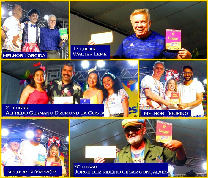 Terceiro lugar – Jorge Luiz Ribeiro César Gonçalves, de Pindamonhangaba, com “Hoje eu vou atrás da banda”. Mereceu aplausos e a vibração de muitas pessoas da plateia. Jorge Luiz é participante assíduo de festivais de marchinhas.