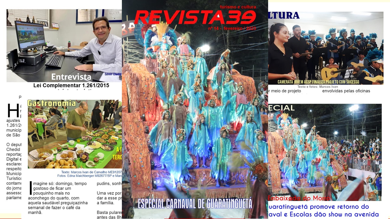 Contendo material a respeito dos Municípios de Interesse Turístico, acessibilidade, Carnaval de Guaratinguetá e Camerata Jovem, a Revist39 Digital do mês de fevereiro ainda mostra alguns momentos do Café Colonial da Esperança.