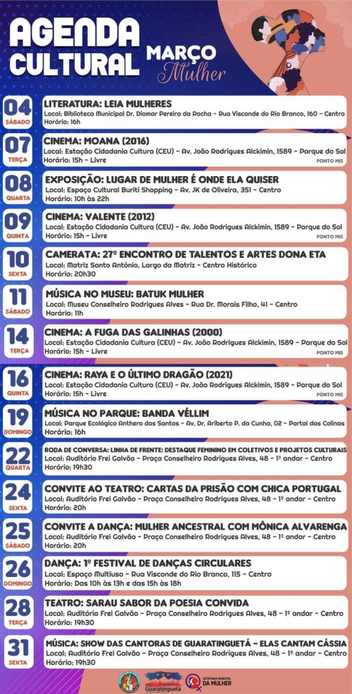 Programação divulgada pela Secretaria de Cultura da Estância Turística de Guaratinguetá, SP