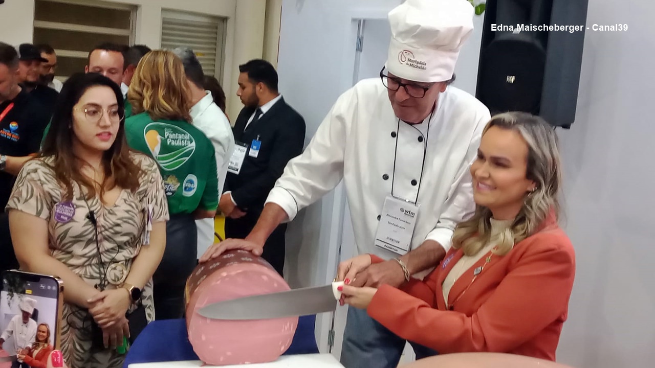 No estande da Setur-SP a autoridade experimentou a Mortadela do Michelão